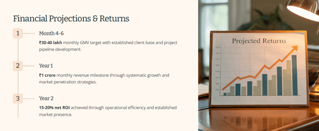 Total investment ranges from 20-25 lakhs, with flexible payment terms and comprehensive support throughout the setup phase. This investment provides everything needed for a successful launch and sustained growth.
