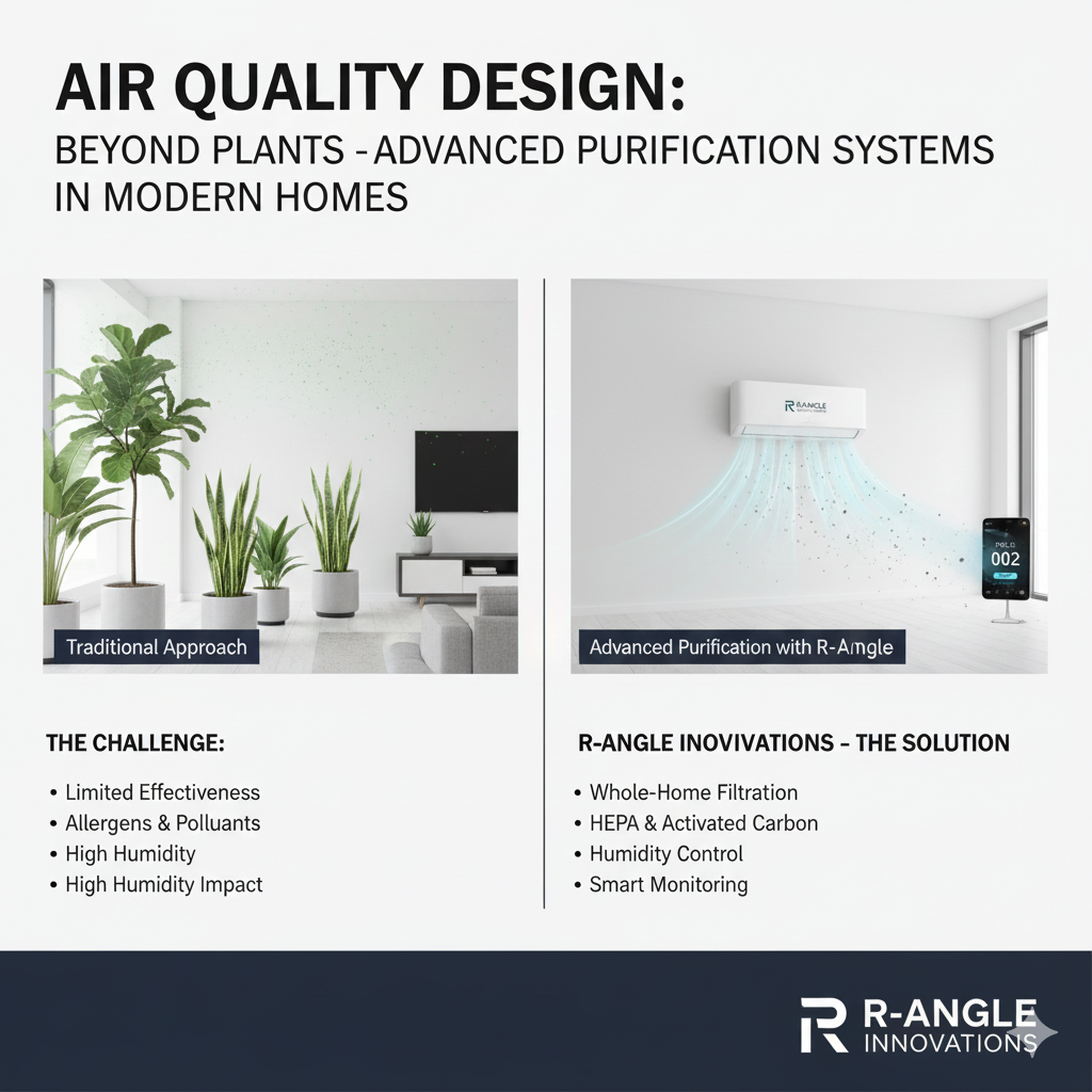 At R-Angle Innovations, we believe healthy homes start with healthy air. This comprehensive guide explores advanced purification technologies that go far beyond placing a few plants in your living room, offering scientifically-backed solutions for Bhubaneswar’s unique air quality challenges.